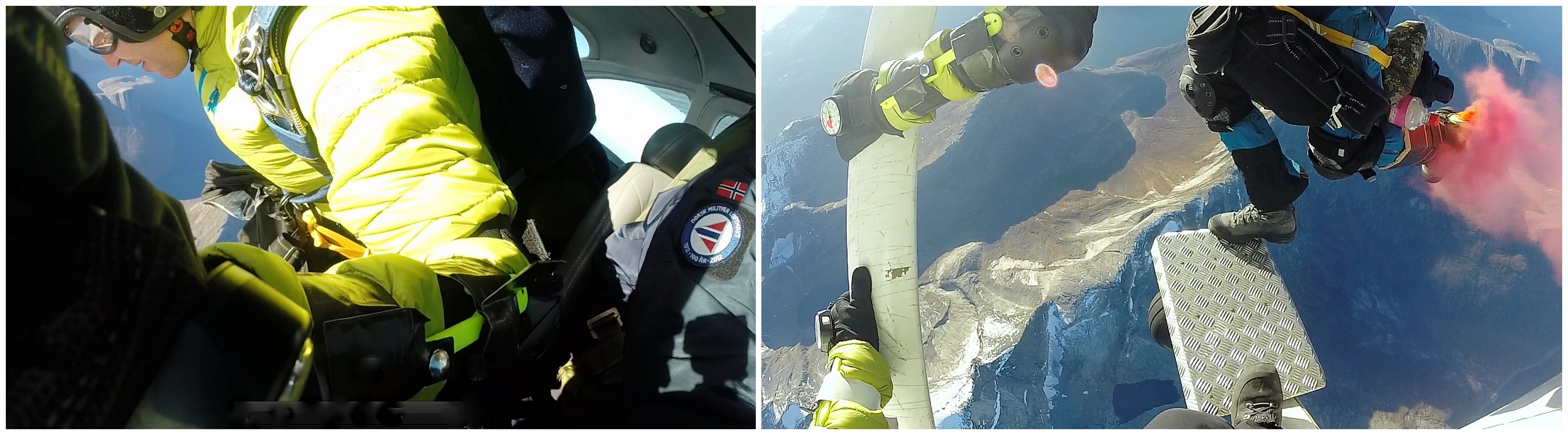 The pilot, Fred Eilers, landed at Evenes airport at noon, while Bjørnar and Rune made the last preparations. Excited they took off, and headed for Tysfjord area without any turbulence. After 30 km flight they circled around Mt Stetind and got tombs up from the ground team. The airplane climbed up to 10000 feet and Bjørnar and Rune were ready for the epic moment – jumping off the plane and land on Mt Stetind.
