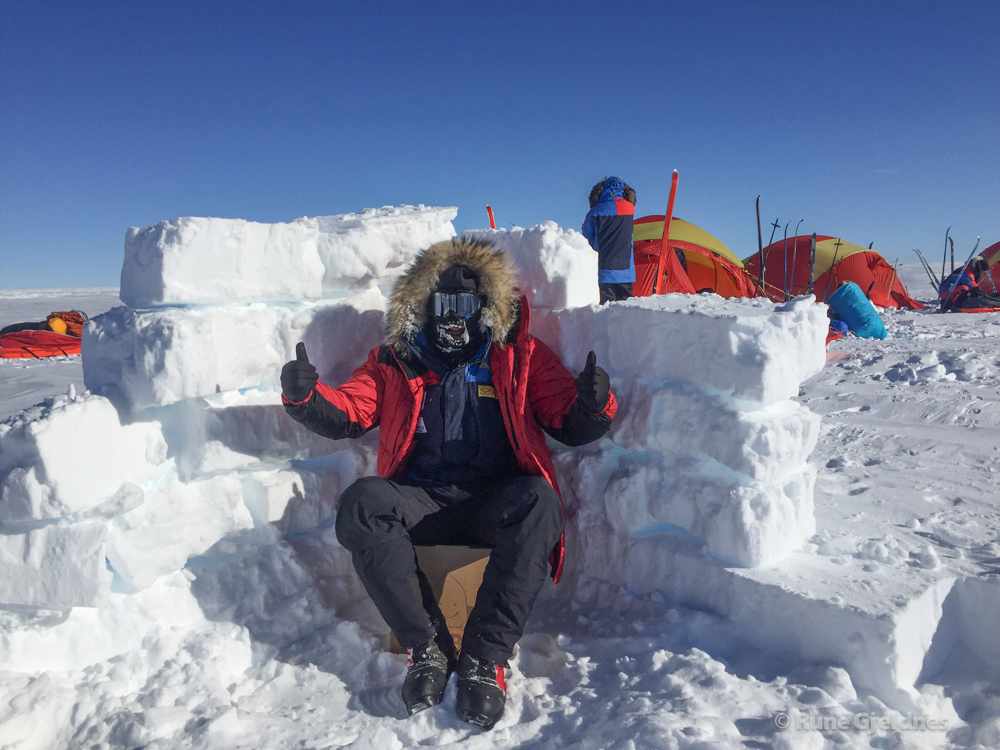 The team of 15, was flown from ALE´s camp at Union Glacier, into 89 degrees, and started off from there. Because of the altitude we had to start slowly, with few hours skiing during first two three days, to try to avoid high altitude sickness. I do think all of us felt the altitude. Down South, 2700 m is similar to 3100 m at equator.