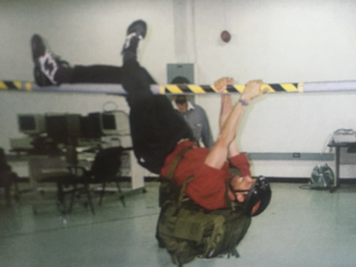 Torry is undertaking a new record on USARIEM´s obstacle course. Good fun!